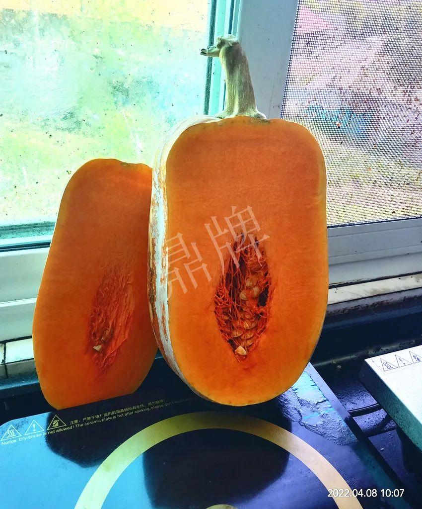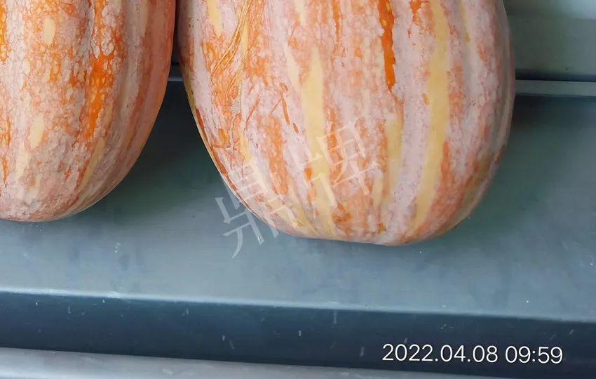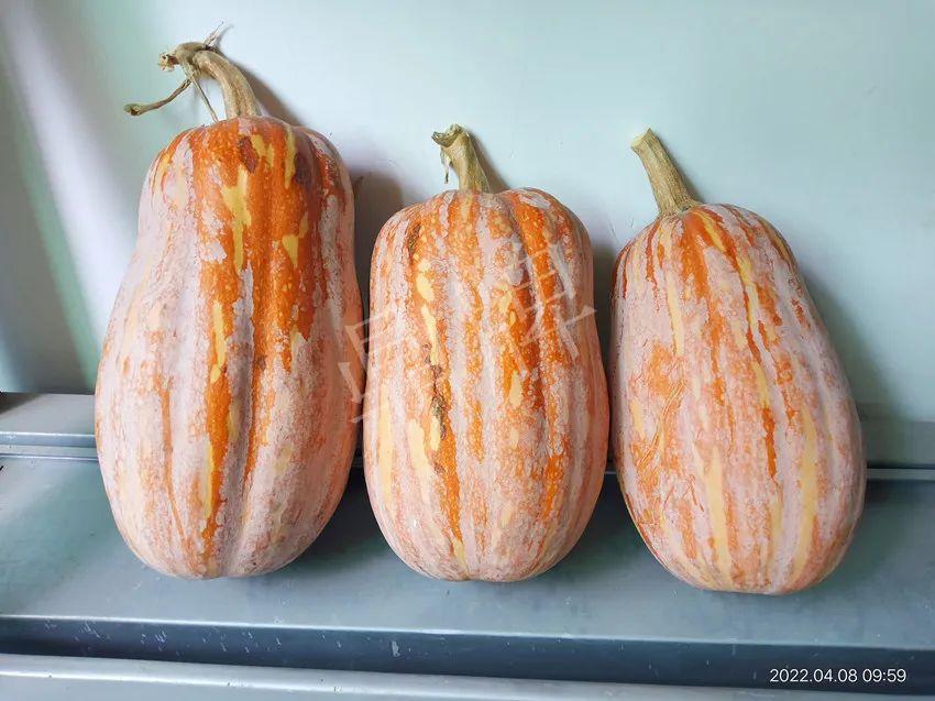 沒想到,“小胖墩”蜜本南瓜越存放越漂亮,瓜開始是粉黃色,到后面越來越紅亮(見前后照片對比)。李老板說,4月8日拍完照片后,家里吃了一個(gè),比之前好吃了,甜度有增加,口感細(xì)膩。