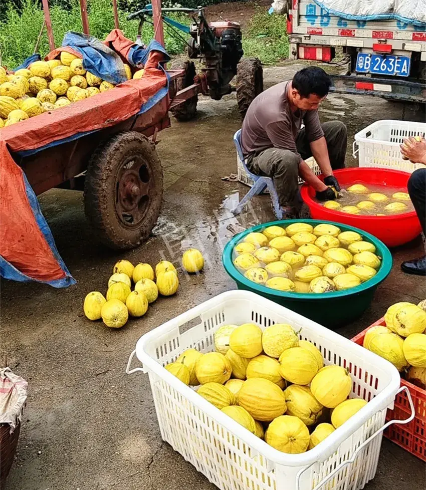 如果是其它甜瓜在雨水中泡了這么長的時間,品質(zhì)會受到明顯影響,甚至不可食用。按理,應該是待天晴后3~5天再采收,才能達到甜瓜應有的品質(zhì)。但雨水不停,實在沒辦法,甜瓜已經(jīng)充分成熟,不得不采收了。還好,“秋甜1號”甜瓜在這種情況下的品質(zhì)雖然有所下降,但相比其它的甜瓜好多了,口感甜度和爽度都還可以,吃客們還是認可。