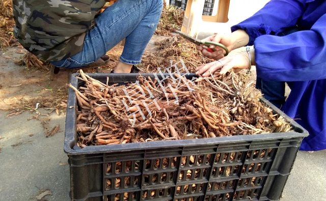 ▲ 移栽的是種苗地下根莖,修剪后裝箱,