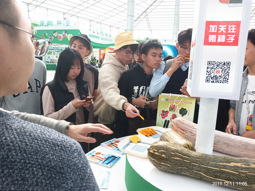 活動現(xiàn)場,鼎牌展位(A2)在展示大廳脫穎而出。客商們走到展臺前紛紛停下腳步,被鼎牌獨創(chuàng)的“沒有大肚子的健美蜜本南瓜”所吸引。