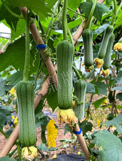 三倍體硬果絲瓜,可增產(chǎn)1倍。早熟,中棒,因坐果特多,果形、果色太美, 客戶建議改名為硬果太美。已申請國家新品種保護(hù)。用種:10~13袋/畝。