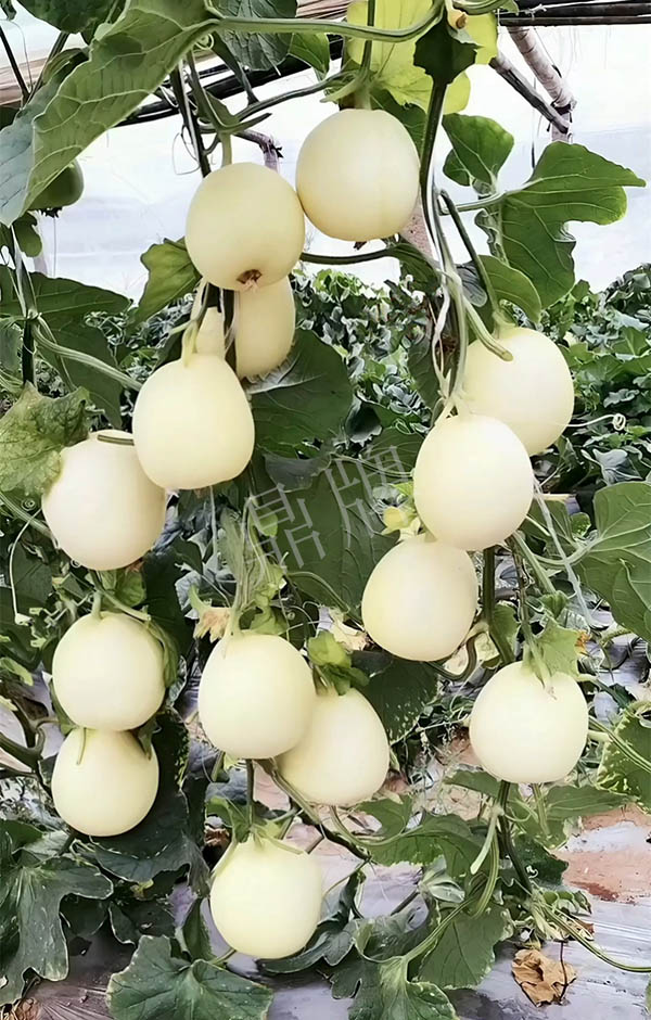 果實(shí)成熟后,甜度高達(dá)19度;果皮、果肉潤白,有一種天然質(zhì)感,看到就讓人喜歡;果肉厚達(dá)3厘米,這是薄皮甜瓜中難以見到的品種,連皮吃時能聽到“咔嚓”之聲,脆爽無比;坐果早而多,單果重650克左右;多雨天氣不易裂瓜,棚室、露地都能獲得豐產(chǎn)。
